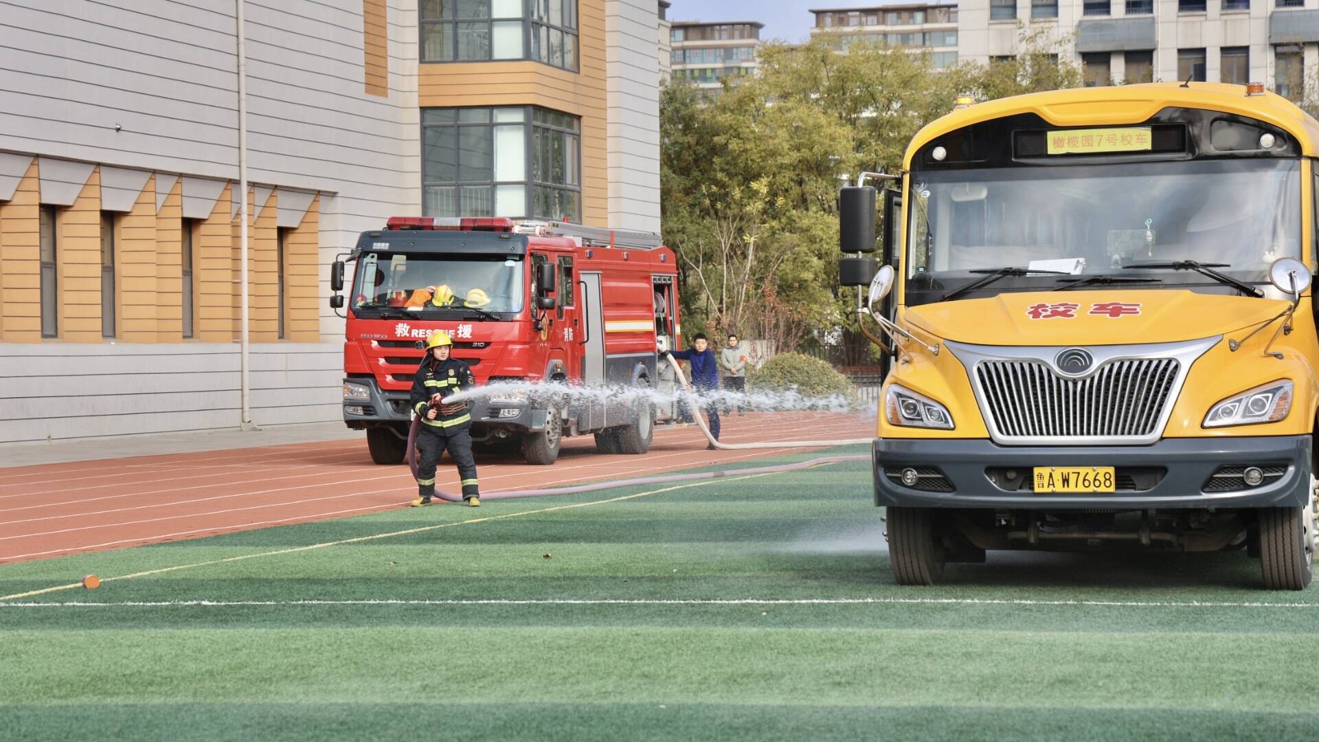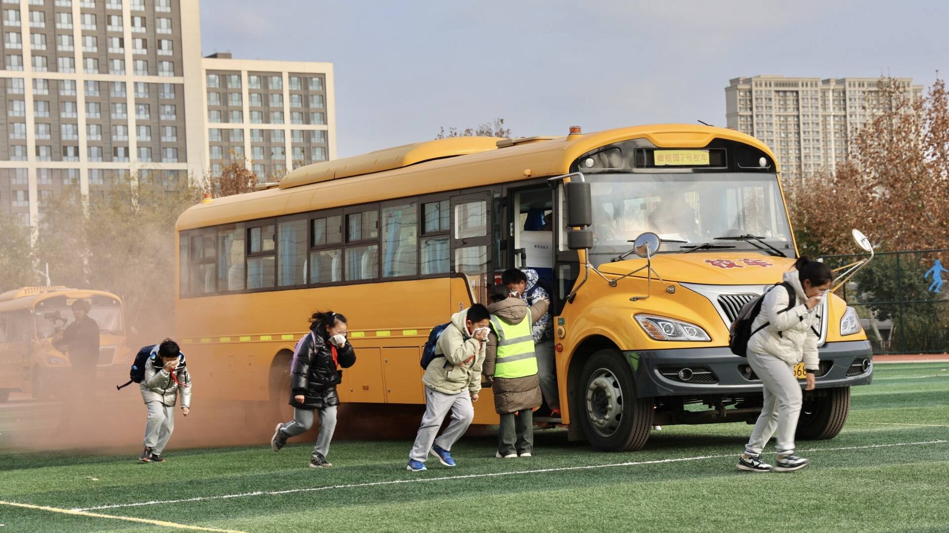 以“练”筑防 守护生命通道!济南高新区开展校车安全应急演练