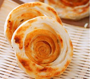 做好的油旋外皮酥脆,内瓤柔嫩,葱香透鼻,因其形似螺旋,表面油润呈金黄色。