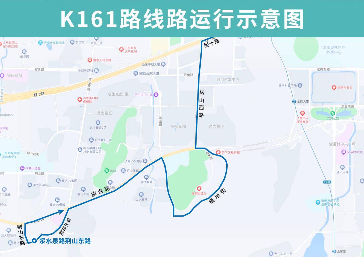 K161路恢复后开往建大新校区方向沿旅游路向西至转山西路向北恢复原线,恢复原转山西路旅游路(路东)站点,撤销临时增设的下井庄园(路东)站点;开往浆水泉路荆山东路方向线路不变。